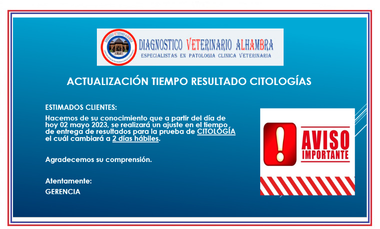 Diagnóstico Veterinario Alhambra abre sus puertas en noviembre del 2007, como una nueva opción de servicios de laboratorio para los médicos veterinarios dedicados a las pequeñas especies.